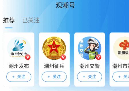 3、“观潮号”拥有潮州的一些相关公众号,有需要的可以关注看看;