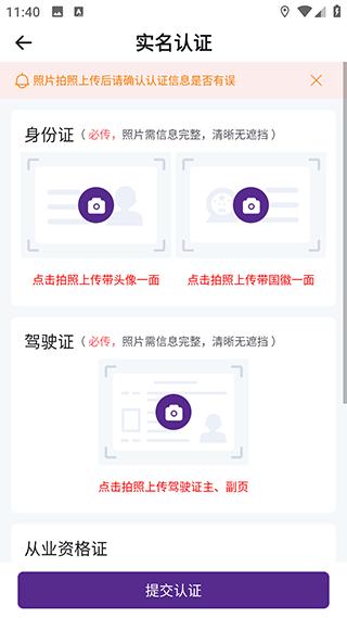 4、用手机拍照或者上传身份证、驾驶证和从业资格证等信息