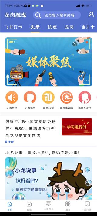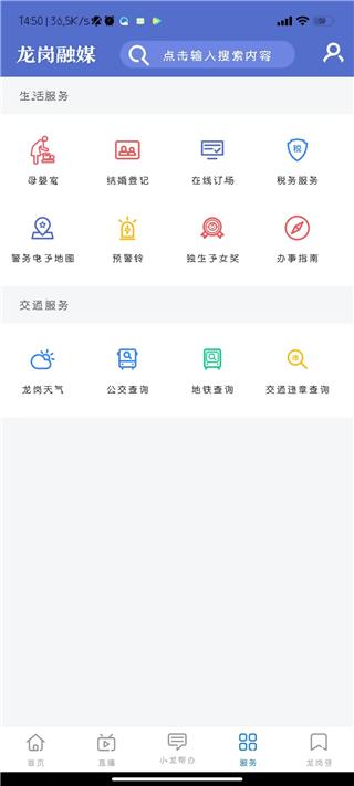 《龙岗融媒APP》在界面设计上秉承了简洁、直观的理念,首页展示了清晰的模块划分,各种功能一目了然。从政务服务到新闻资讯,再到便民服务,每个部分都很容易找到,用户无需多次点击或搜索,就能迅速进入自己需要的内容。
