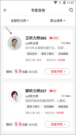 2、页面会看到很多的听力师,往下翻找到自己信任的专家,点击她的个人主页。