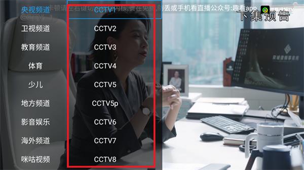 3、点击屏幕左侧会弹出电视频道节目栏。