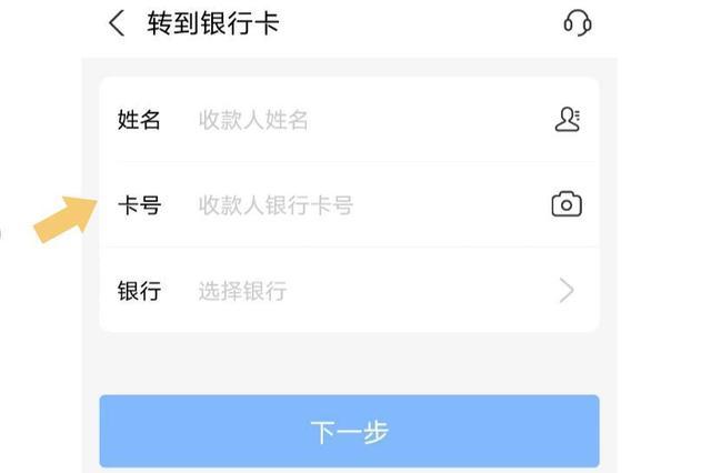 选择转到银行卡以后,输入姓名、银行卡、银行。如下图: