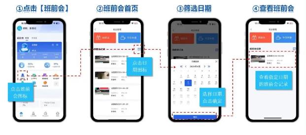 3、点击“班前会”,点击日历图标,筛选日期,可查看对应日期的班前会记录