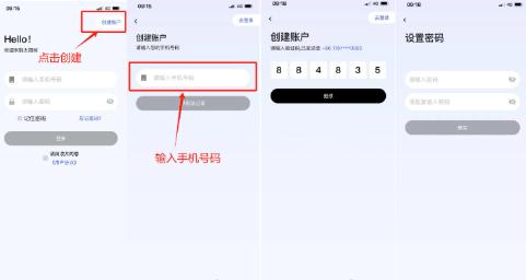 1. 创建账户打开客户端,点击创建账户,输入手机号码后,接受验证码并设定密码即可完成账户注册