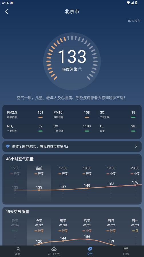 3、空气质量监测:提供实时的空气质量指数和空气质量等级,帮助用户了解当前环境的空气情况,并提供相应的健康建议和防护措施。