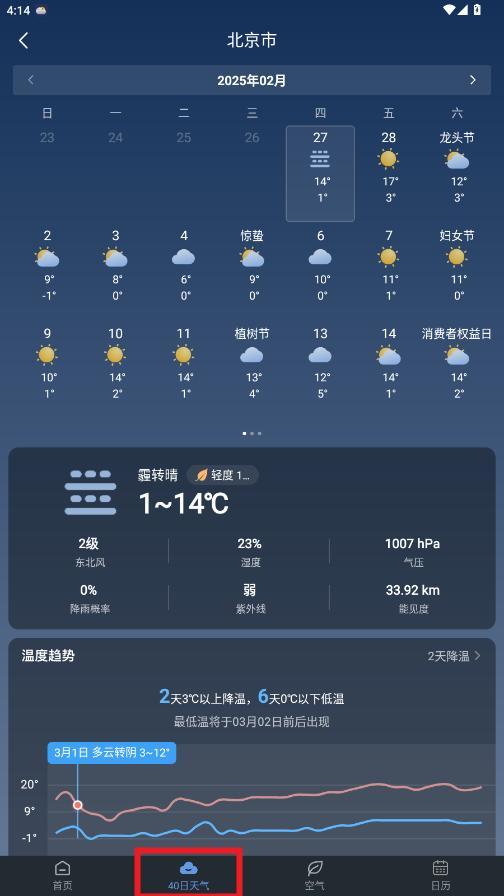 3、天气趋势分析:用户可以查看未来一段时间内的天气变化趋势,有助于合理安排活动。