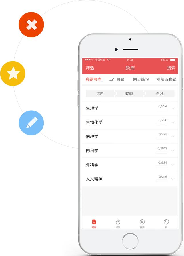真题题库:涵盖31年考研真题,提供题目搜索、错题、笔记、收藏等实用功能,实现随时学习,实时整理的功能。大数据收集考研学生的答题、错题、收藏情况,为考研学生的自我评估、及时调整提供参考依据。
