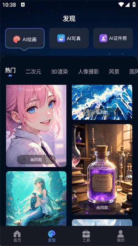 5、在发现页面还为大家提供了AI绘画、AI写真等功能