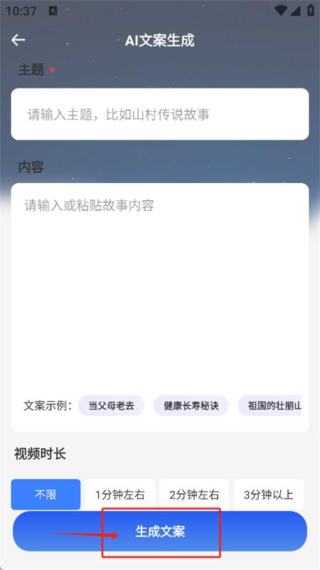 生成与文本描述相关的创意文案,并根据用户选择的视频风格进行调整。