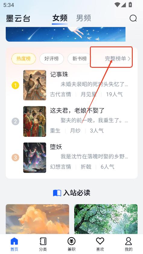 2、点击完整榜单进入,还可以查看更多小说内容