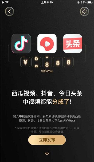 5、中视频伙伴计划:发布1分钟以上的横屏视频,同步到其他平台,通过广告分成和内容分成获得收益。