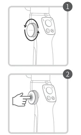 按住扳机键进入锁定模式,松开扳机键返回之前的云台模式。 在锁定模式下,模式指示灯将变为红色常亮,俯仰轴、平移轴和横滚轴均已锁定,这表明无论手柄移动如何,您的手机都将保持相同的方向。