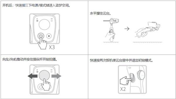 Tips::为保证云台快速对中并恢复跟随,云台的最终位置将在距真实中心±5°的范围内。摇杆可用于将云台微调至真实中心。