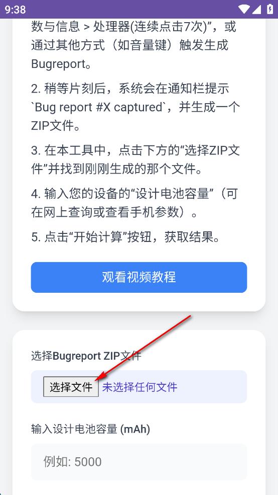 点击【选择Bugreport ZIP文件】,并在手机文件管理器中找到刚刚生成的那个ZIP压缩包。