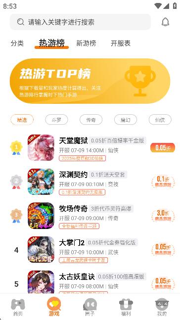 2、丰富游戏资源:收录上千款手游,涵盖仙侠、卡牌、传奇、竞技等多种类型,提供免费首充礼包、每日代币等福利,满足不同玩家需求。