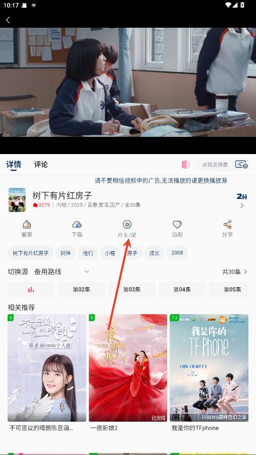 1.在影视播放界面,点击片头/尾。