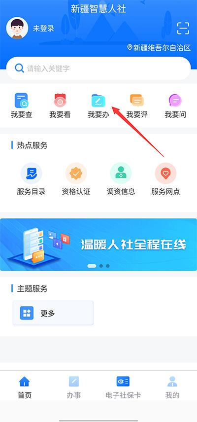 1、下载后打开进入新疆智慧人社app,点击办事模块