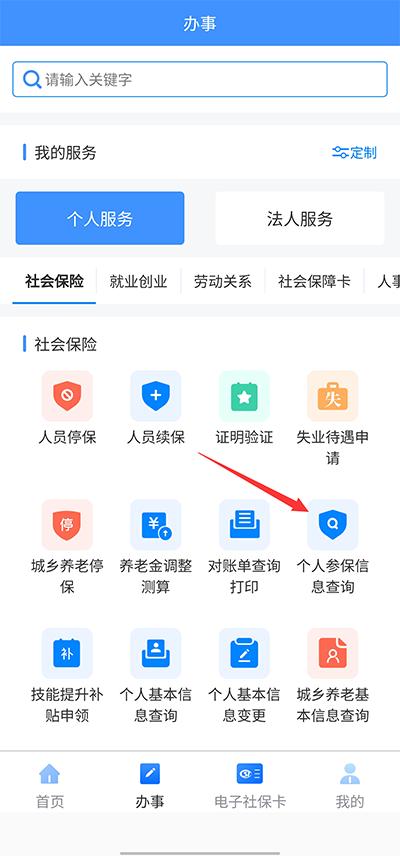 2、进入社会保险服务界面,点击“个人参保信息查询”即可