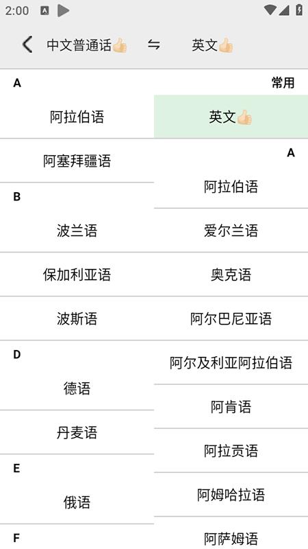 4、语言切换:可一键切换不同的语言,软件能够将不同的语言通过首字母进行排序,方便快速选择。