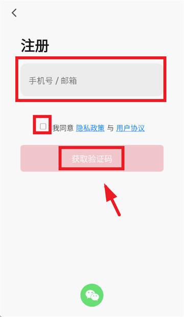输入手机号,勾选我同意隐私政策与用户协议,点击获取验证码,输入验证码即可注册