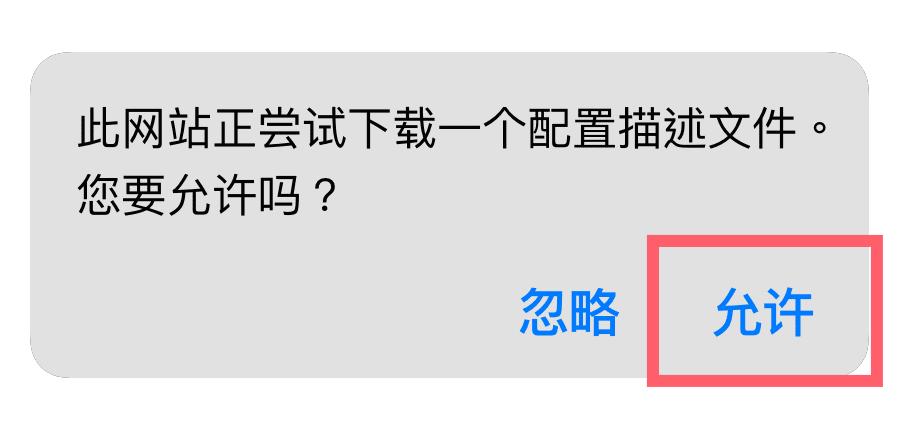 允许安装未知的来源,点击“允许”下载安装必要的描述文件