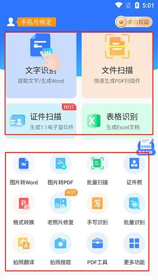 1、下载安装可以看到它有很多的功能,比如文字识别、文件扫描、图片转换、老照片修复等等;