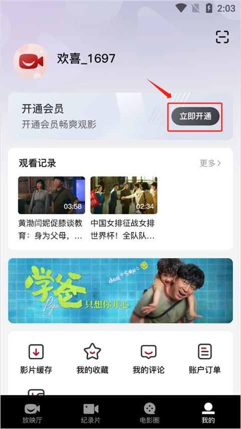 1、通过欢喜首映底部的首映厅、纪录片、典藏馆和电影券这四个分类中找出自己想看的电影;