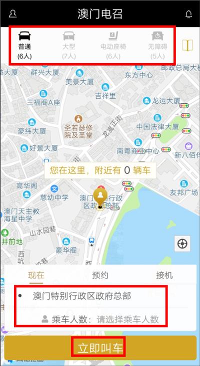 2、进入app后,根据自己的出行人数,选择打车类型,然后设置出行终点,点击【立即叫车】即可为你打车。