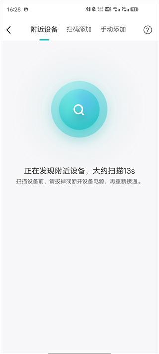 2、选择【添加设备】,打开手机蓝牙,应用会自动搜索附近可添加的设备;