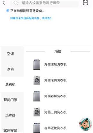 3、选择设备型号,根据提示操作设备的控制面板,连接WiFi信号,等待设备配网,点击设备名称进行连接。