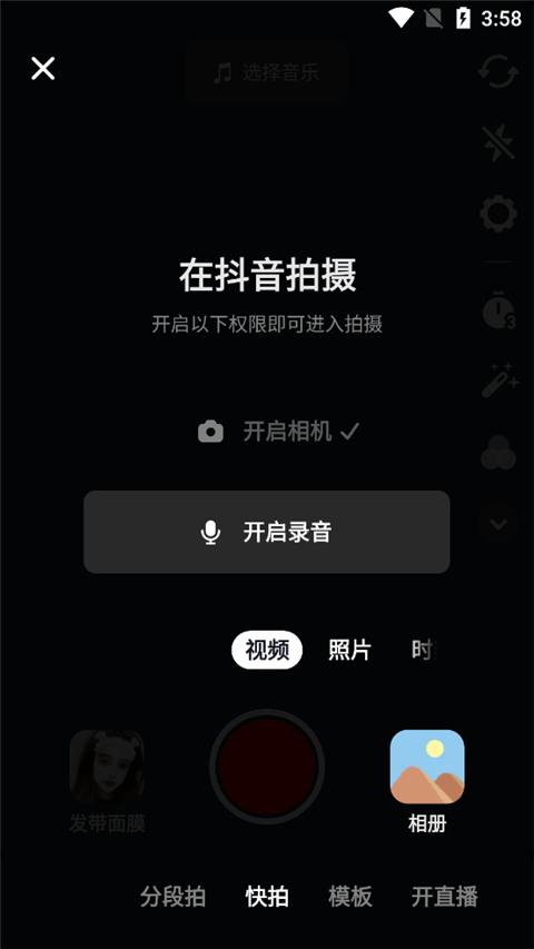 10、这个时候我们返回首页拍摄视频时可以看到手机相册能够使用啦。
