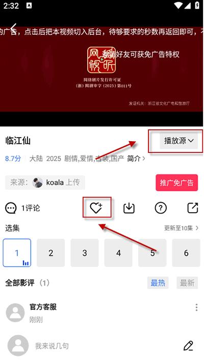 3、即可进行免费观看,如果不能观看切换播放源即可