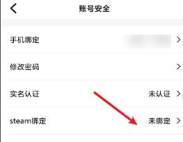 2、在账号安全页面中,打开steam绑定选项。