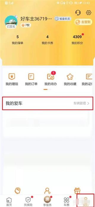 进入平安好车主APP,依次打开【我的】-【我的爱车】,如下图所示。
