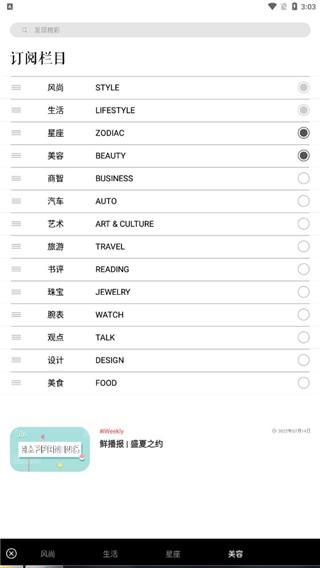 精选栏目:国际新闻、时尚资讯、生活方式,三个主要栏目涵盖全球潮流生活方方面面