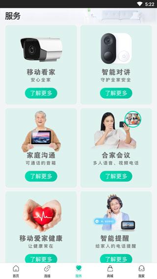 1、打开移动爱家官方版,如图,在首页你可以看到很多软件的实用功能;
