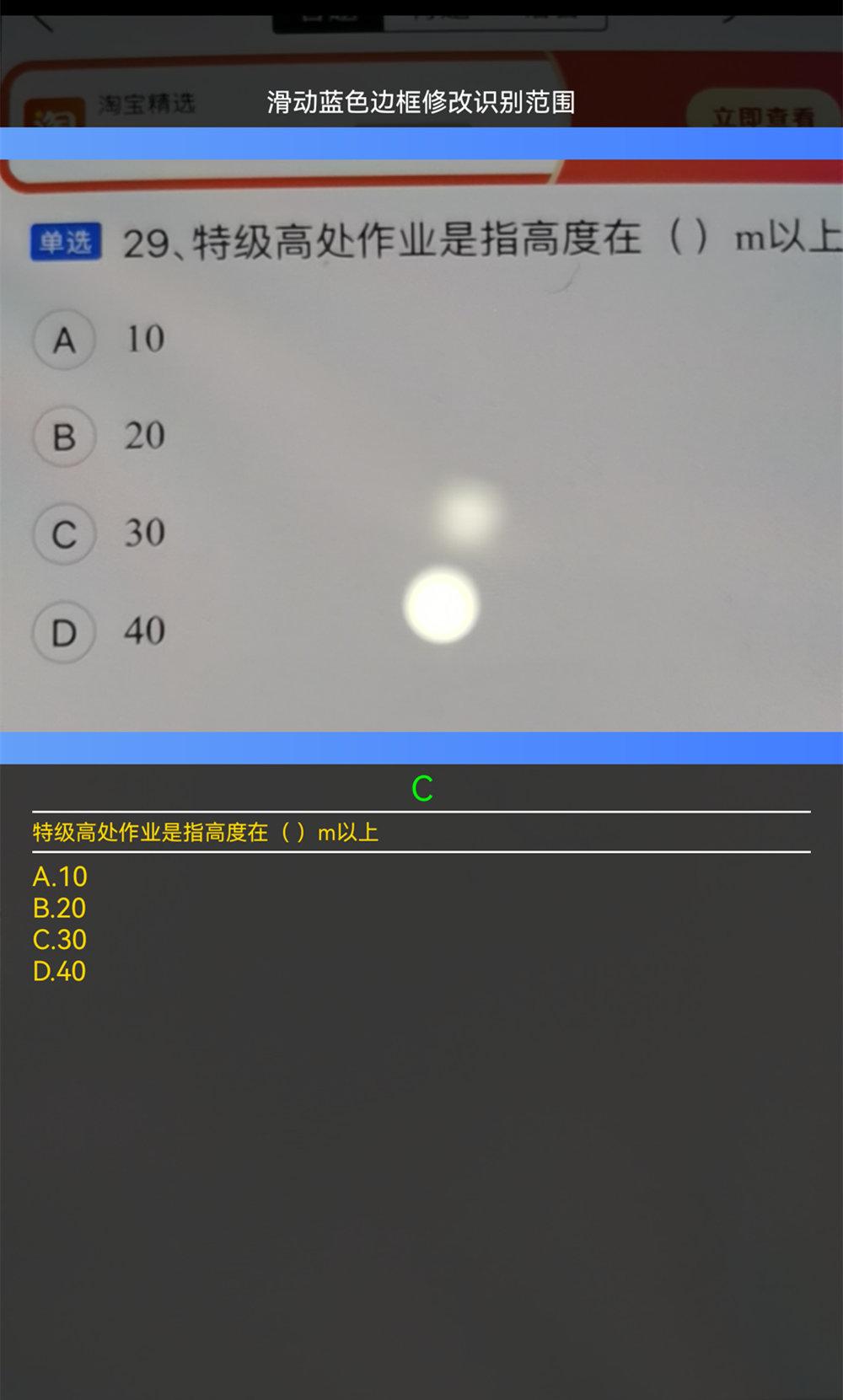 摄像头对准需要识别的题目,屏幕想法会显示所有匹配到的题目。