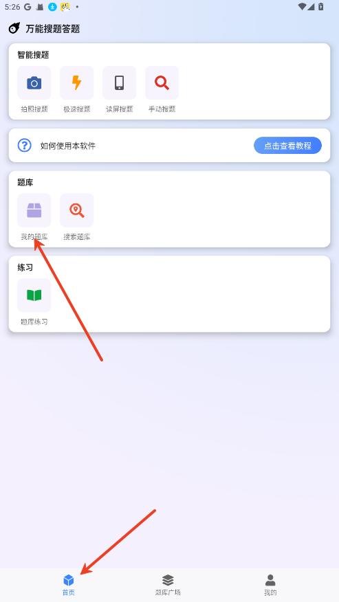 点击“首页”-“极速搜题”功能,打开“极速搜题”功能