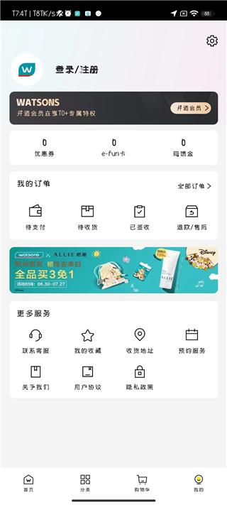 五、在会员中心页面,开通屈臣氏会员e卡,会员每年可省钱660元,享有多种优惠。