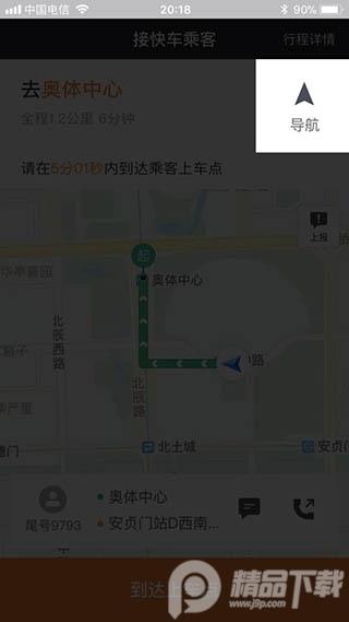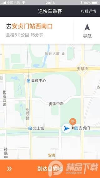 8、接到乘客后就导航去乘客设定的目的地吧,到你把乘客送到目的地后,记得滑动选择到达目的地。