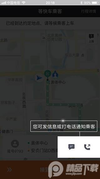 7、如果你发现乘客不在上车点,你可以点击短信或者电话,联系乘客,知道乘客是什么情况还没到达。