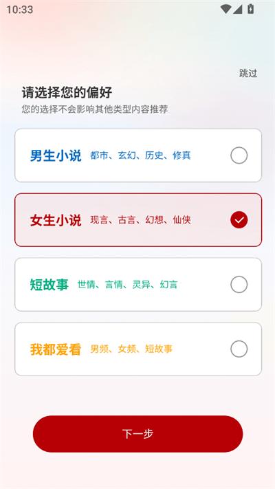 2、第一次使用,可以自定义设置好阅读偏好,如图所示。
