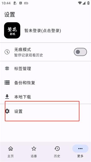4、如果当时没选择目录里面的内容是空的也没关系,点击更多,在点击设置。