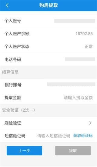 4、点击【下一步】进入购房提取信息页面,可以根据账户情况选择提取账户(公积金账户或补贴账户),若无补贴账户,则选择公积金账户。