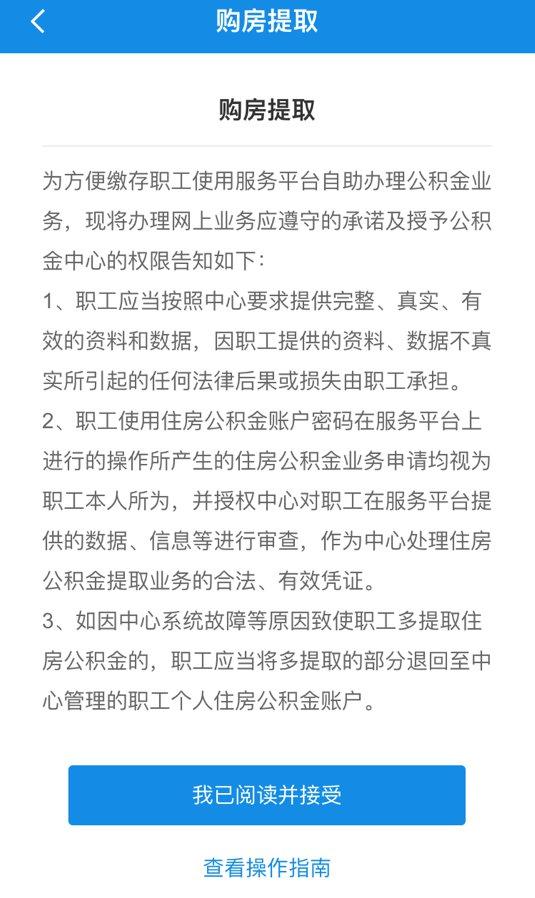 2、点击【我已阅读并接受】后进入办理业务页面,可以根据账户情况选择提取账户(公积金账户或补贴账户),若无补贴账户,则选择公积金账户。