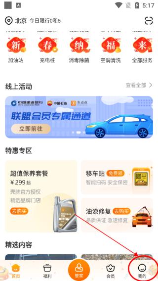 1、在车点点APP中点击“我的”