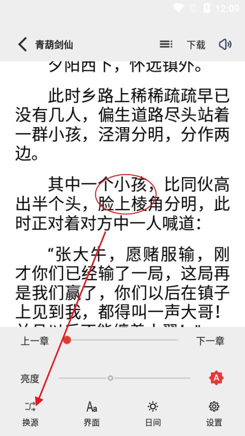3、点击一下屏幕中间,弹出设置功能,选择换源;