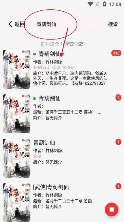 1、下载进入软件,搜索你想看的小说名字,选择一个阅读;