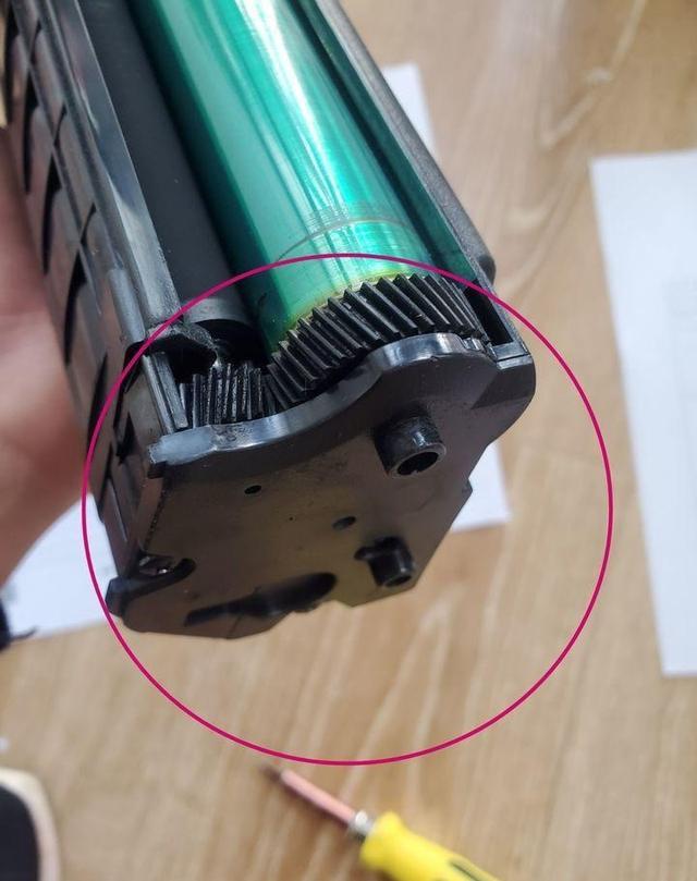 2【首先拧下硒鼓右侧的两颗螺丝,取下右侧盖。