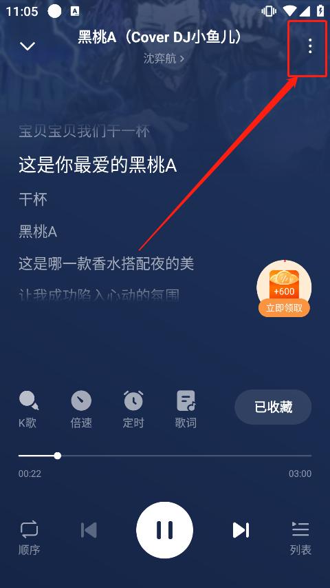 2、进入音乐详细界面,点击右上方“更多”即可点击下载